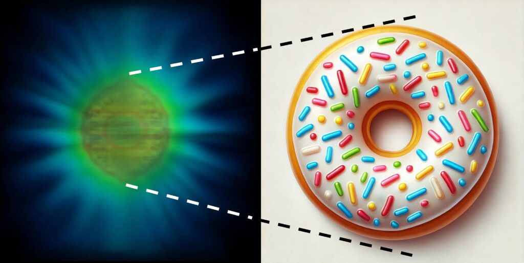 Then it hit him: that wasn’t a photon. It was a sprinkled donut! Homer’s eyes widened as he realized the truth. He burst into the break room, waving his arms wildly. “EVERYBODY LISTEN UP! The future of science is HERE, and it’s FROSTED!”